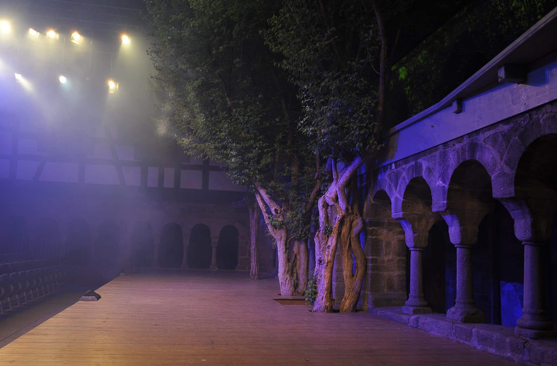 Im Sommer verwandelt sich der romanische Kreuzgang in eine eindrucksvolle Freilichtbühne. Die Kreuzgangspiele sind ein kulturelles Aushängeschild das weit über Franken hinaus bekannt ist. Klassiker, Familienstücke und Eigenproduktionen werden hier mit großer künstlerischer Qualität und atmosphärischer Nähe zur Bühne inszeniert. Das Theater in seiner heutigen Form ist einzigartig in Süddeutschland. Das aktuelle Programm sowie weitere Informationen erhalten Sie unter folgendem Link.