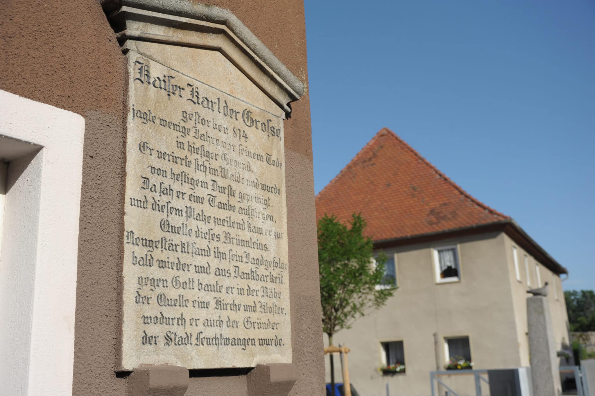 So wurde an dieser feuchten Wange der Landschaft – „fiuhta wanc“, wie es im Althochdeutschen hieß, eine spirituelle Gemeinschaft gegründet, die bald zu einem kulturellen und sozialen Zentrum der Region wurde. Noch heute erinnert der sogenannte Täubleinbrunnen daran. Auf der Brunnensäule ist der Text der Sage zu lesen und auch eine Tafel an einem benachbarten Gebäude erinnert daran.