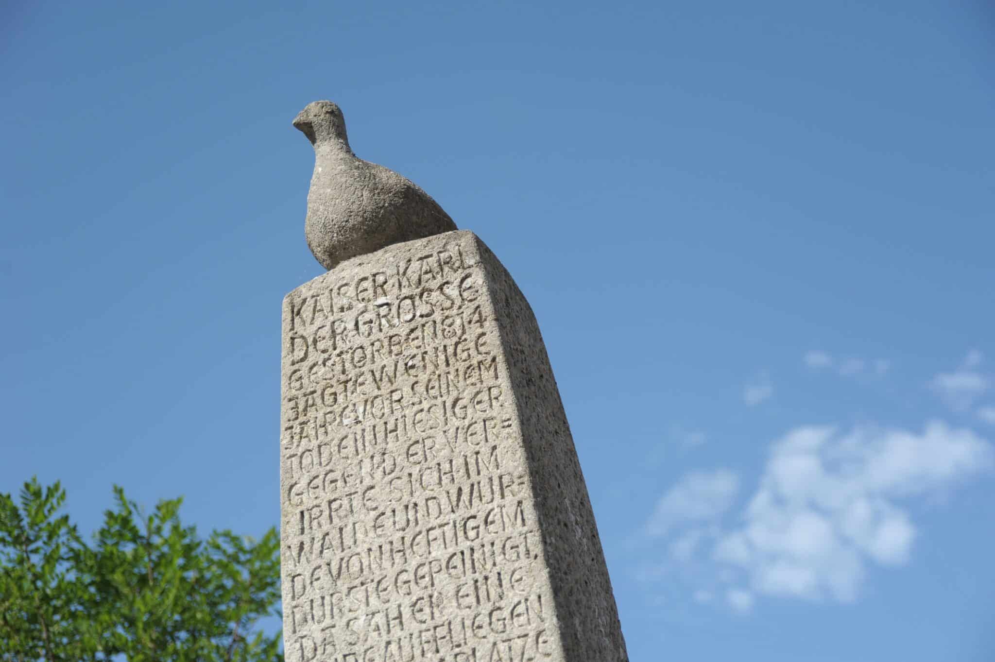 Der Überlieferung nach war Kaiser Karl der Große mit seinem Gefolge in der hiesigen Gegend zur Jagd unterwegs. Im dichten Wald verlor er die Orientierung, vom Durst geplagt. In diesem Moment sah er eine Taube auffliegen. Der Taube folgend, gelangte er zu einer Quelle, trank und fand Kraft.