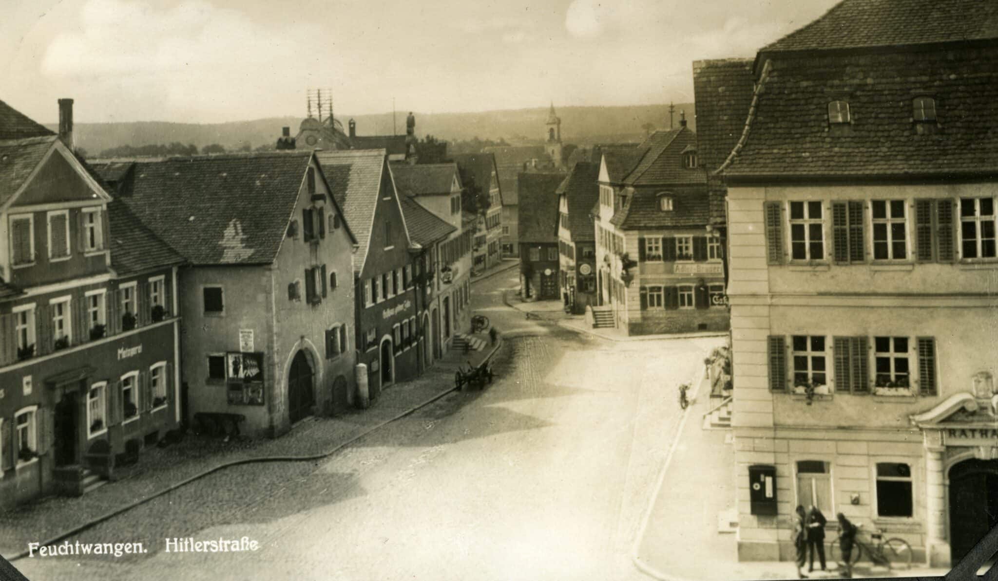 Während der Herrschaft des Nationalsozialismus kam es auch hier zu Übergriffen gegen die letzten Mitglieder der alten Judengemeinde und zur Zerstörung der Synagoge. In den Weltkriegen 1914 – 1918 und 1939 – 1945 verloren viele Feuchtwanger als Soldaten ihr Leben. Die Stadt selbst war im Gegensatz zu einigen ihrer heutigen Ortsteile von Zerstörungen verschont geblieben.