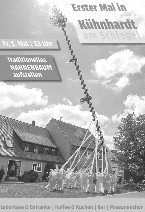 Erster Mai in Kühnhardt am Schlegel, Traditionelles Hahnenbaum aufstellen